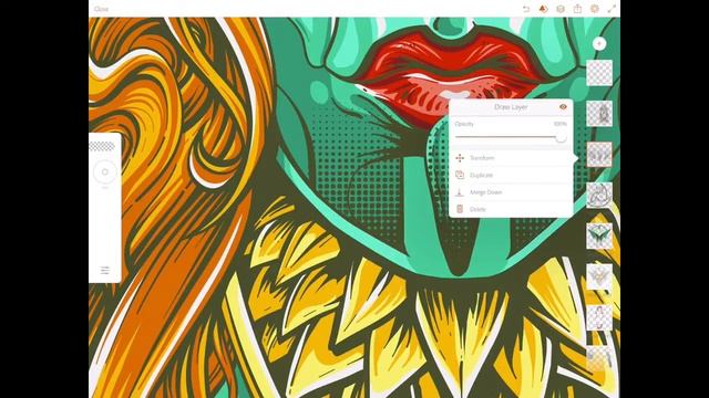 As the last step I used the halftone shapes I made in Adobe Capture to create textures in the final illustration in Adobe Draw. The shape palette lets you stamp in shapes from libraries you have made and then adjust and customize them.