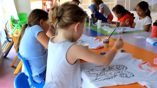 Играем в игровой комнате и на детской площадке в отеле, а так же зашли на Мини Диско. Арина делает футболку своими руками, получилось как получилось)) Аниматоры старались помочь, но Арина все сама.