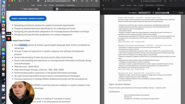 Люба Рябова, эксперт AgileFluent и международный рекрутер, рассказывает на примере резюме, как эего ффективно адаптировать под вакансию. Это важный этап в построении международной карьеры — так вы с большей вероятностью пройдёте автоматический скриннинг своего резюме. А вот саммари встречи: Название резюме такое же, как и вакансии Лучше избежать даже малейших отличий и написать слово в слово. Ключевые слова Самый важный пункт. Твоя задача — найти ключевые слова в вакансии и использовать их в резюме. Так ты пройдёшь автоматический скриннинг и с большей вероятностью дойдёшь до устного интервью. Графа Requirements Внимательно проверь, все ли возможные требования у тебя отображены в резюме. Если в вакансии прописано, например, «Fluent English language is a must», убедись, что в твоём резюме указан уровень английского. Стек технологий С ним поступаем так же, как и с ключевыми словами: если у тебя есть опыт на этом стеке, обязательно укажи его в CV. Разобрать своё резме с экспертом можно на сайте: https://agilefluent.ru/cv Больше полезной информации на нашем канале: https://t.me/agilefluent #как_адаптировать_резюме #работа_за_границей #резюме