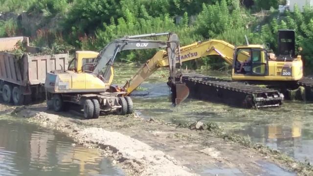 Челябинск строительство,реставрация,чистка р.Миасс спец техникой. В районе концертного зала Прокофьева. 18.08.2019г