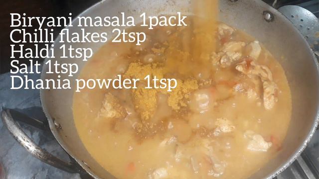 1.Rice 1.5kg 2.chicken 2kg 3.onions sliced 4 to 5 4. Tomatoes 5 to 6 5. Ginger garlic paste 6. Biryani Masala 1 packet 7. chilli flakes 1 tbs 8 . turmeric powder 1tsp 9. coriander powder 1tsp 10. imli 1tbs 11. salt 1 tsp 12. fried onions green chillies and ginger for layering process 13. oil #food #foodie #biryani #chicken #viral #happycookingtoyou #