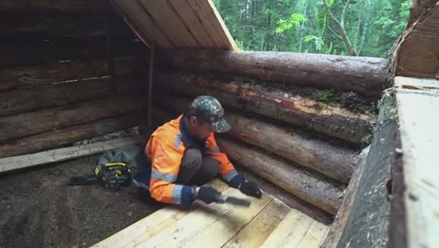 ТАЙГА, ШТОРМОВОЙ ВЕТЕР. СТРОИТЕЛЬСТВО ЛЕСНОЙ ИЗБУШКИ, НАБИРАЮ ПОЛЫ. БЫТ В ТАЙГЕ.