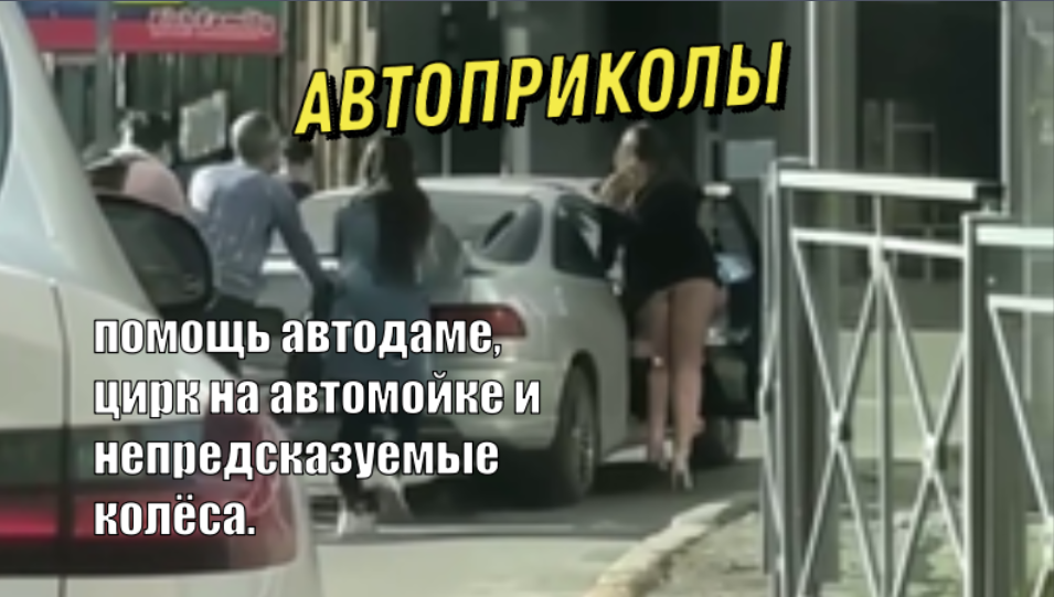 АВТОПРИКОЛЫ :помощь автодаме, цирк на автомойке и непредсказуемые колёса.
