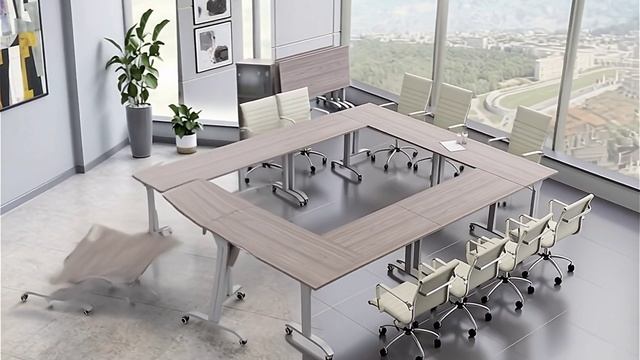 Откидная столешница и мобильное основание на колесах, благодаря которым столы легко перемещаются и компактно складываются, освобождая пространство.