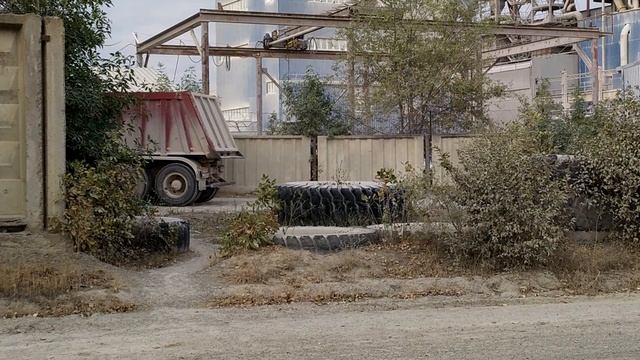 КамАЗ возвращается на базу. МАЗ осуществляет полив дорог. АТЦ ООО "Рускальк". 27.08.23г. 17:46, 17:56.