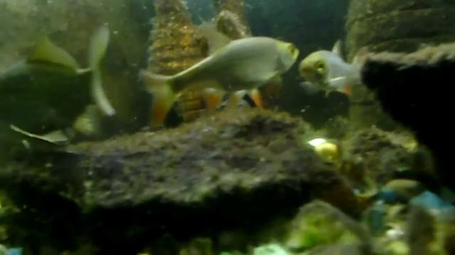 В аквариум с карасем , плотвой и сомами запустил речного рака