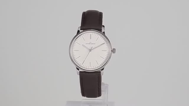Кварцевые часы в элегантном ретро-стиле. Круглый корпус диаметром 36 мм выполнен из прочной нержавеющей стали. На лаконичном циферблате белого цвета расположены контрастные риски и хорошо читаемые стрелки часов, минут и секунд. Удобная в использовании рельефная заводная головка украшена логотипом бренда. Часы установлены на темно-коричневый ремешок из натуральной кожи. Его дополняет застежка-пряжка из стали. Этот модный и универсальный аксессуар удачно дополнит ваш образ в классическом стиле или в стиле casual. https://jacques-lemans.ru/catalog/watch_wristband_jl/n_217b/