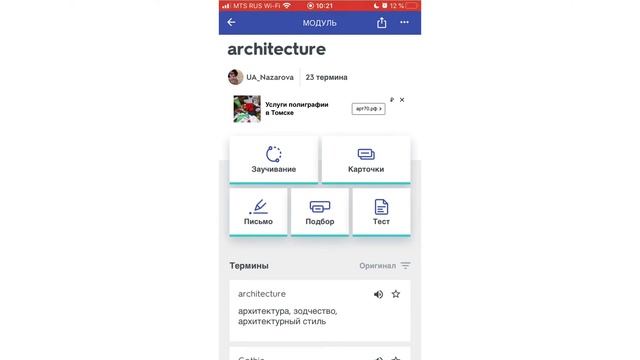 Использование мобильного приложения Quizlet при презентации лексики на уроках английского языка