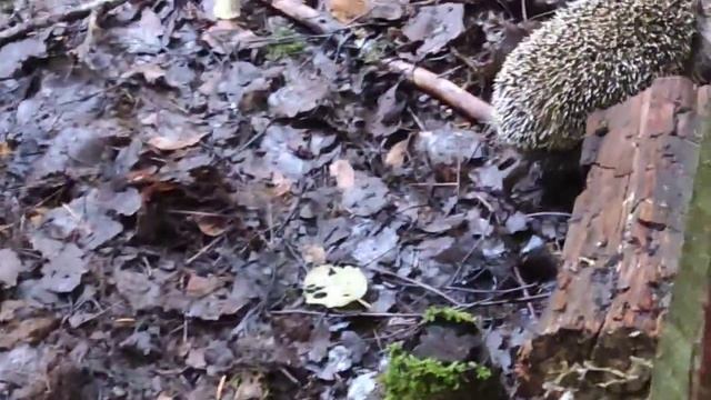 Ежик ворует кошачий корм