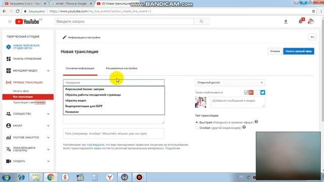 Как вести прямую трансляцию в Google Hangouts (YOU-tube).