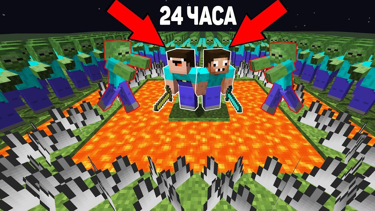 НУБ И ПРО 24 ЧАСА ВЫЖИВАЮТ В ЗОМБИ АПОКАЛИПСИС В МАЙНКРАФТ ! ДОМ ЛОВУШКА И 100% ЗАЩИТА В MINECRAFT