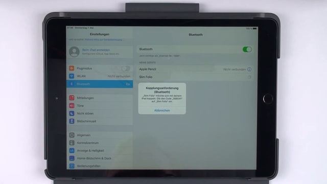 Es wird gezeigt, wie man die Hardware-Tastatur mit dem Apple iPad verbindet, damit man sie im Anschluss direkt nutzen kann.