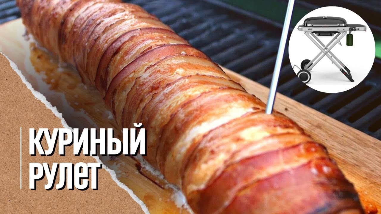 РУЛЕТ из куриной грудки на кедровой дощечке в газовом гриле Weber traveler