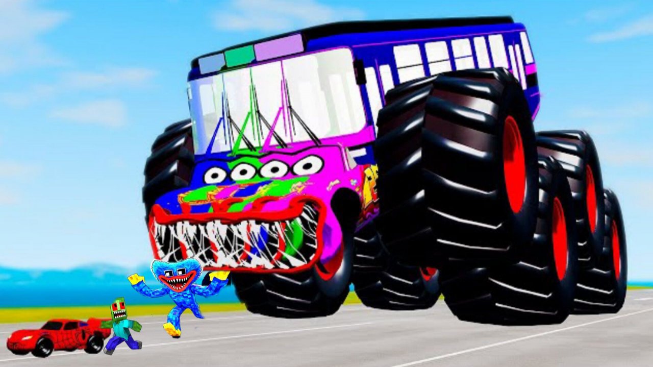 СПРУНКИ майнкрафт мультфильм ВСЕ МОНСТРЫ, Большие и маленькие машины, ПОЖИРАТЕЛЕМ АВТОМОБИЛЕЙ И АВТОБУСОВ – BeamNG Drive