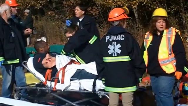 SPARROWBUSH — Stuffed teddy bears took the place of injured victims and smoke rose from a machine instead of an actual train fire. Most of the large-scale training exercise organized by Orange County to simulate a train-versus-bus accident was staged. But for the roughly 15 local agencies and the dozens of emergency, fire and medical personnel who took part, the experience of practicing a response to a train accident with multiple casualties is a chance to hone skills and eliminate mistakes that could mean life or death in a real collision. "This is the time to learn," said Walt Koury, emergency services commissioner for Orange County. "This is the time to find out what those gaps are in training, equipment and management."