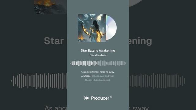 Star Eater's Awakening epic gothic rock opera, female lead vocals, sweeping orchestra, pipe organ, full choir, electric guitars, powerful drums, violin and cello, brass, dramatic, fast galloping rhythm, minor key, cathedral reverb, dark cinematic atmosphere Lyrics (Intro - Heavy, driving guitar riff with organ swells) (Verse 1) From cosmic dust, a slumber deep, Where nebulae their secrets keep. A titan stirs, a primal dread, The universe, his silent bed. No mortal tongue can speak his name, A burning, all-consuming flame. He dreams of void, of endless night, And swallows stars with hungry might! (Pre-Chorus) The celestial tapestry, it starts to fray, As ancient hunger holds its sway. A whisper echoes, cold and vast, The die of destiny is cast! (Chorus - Powerful, anthemic, with layered vocals and organ) HE IS THE STAR EATER! THE VOID'S EMBRACE! HE FEEDS ON LIGHT, LEAVING NO TRACE! THE COSMIC HUNGER, A SILENT ROAR! THE ANCIENT GOD AWAKENS, FOREVERMORE! HE IS THE STAR EATER! THE END OF DAYS! CONSUMING WORLDS IN FIERY MAZE! FROM GALAXIES, HE TAKES HIS TOLL! THE STAR EATER, HE CLAIMS HIS SOUL! (Verse 2) The constellations start to fade, By his insatiable parade. Each burning sun, a fleeting spark, Consumed within his endless dark. He drinks the light, he drains the fire, Fulfilling his eternal desire. No mercy shown, no plea he hears, Just cosmic silence, born of fears! (Pre-Chorus) The celestial tapestry, it starts to fray, As ancient hunger holds its sway. A whisper echoes, cold and vast, The die of destiny is cast! (Chorus - Powerful, anthemic, with layered vocals and organ) HE IS THE STAR EATER! THE VOID'S EMBRACE! HE FEEDS ON LIGHT, LEAVING NO TRACE! THE COSMIC HUNGER, A SILENT ROAR! THE ANCIENT GOD AWAKENS, FOREVERMORE! HE IS THE STAR EATER! THE END OF DAYS! CONSUMING WORLDS IN FIERY MAZE! FROM GALAXIES, HE TAKES HIS TOLL! THE STAR EATER, HE CLAIMS HIS SOUL! (Bridge - Slower, more atmospheric, with a haunting organ melody and spoken word) (Spoken, deep, echoing voice) "They called him myth, a whispered tale, A shadow on the cosmic trail. But now he rises, from the deep, While mortal worlds begin to weep. His hunger is the universe's curse, A symphony of cosmic hearse." (Guitar Solo - Fast, melodic, and epic, with organ backing) (Chorus - Even more powerful, with added choir and intensity) HE IS THE STAR EATER! THE VOID'S EMBRACE! HE FEEDS ON LIGHT, LEAVING NO TRACE! THE COSMIC HUNGER, A SILENT ROAR! THE ANCIENT GOD AWAKENS, FOREVERMORE! HE IS THE STAR EATER! THE END OF DAYS! CONSUMING WORLDS IN FIERY MAZE! FROM GALAXIES, HE TAKES HIS TOLL! THE STAR EATER, HE CLAIMS HIS SOUL! (Outro - Riff fades out with a final, sustained organ chord and a distant, echoing roar) Star Eater! Awakens! Forevermore! (Silence)