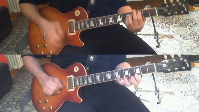 Before all let me say this is not a Buckethead song, i'm just a fan of him and want tribute him with a title of one of my songs. I'm not nearly 1/10 as skilled as him but he is really my favourite guitarist, so that's why i thought about this. After many month that i didnt make any new "double guitar" video (cause moving from my Panasonic to my new Microsoft Lifecam) i've decided to try to make a "double guitar" video with the Lifecam so in this video and next you can see the results. I've recorded the video of my self playing both base only and the 4 solos i've improvised over it. Then i extracted the mp3 saved with Reaper while playing it. So in the video you see me playing both base and jam and the audio you heard is the mp3 rendered by Reaper. Interface for connect guitar to pc: Line 6 Toneport GX Guitar used for base: Gibson Les Paul Standard Guitar used for jam: Gibson Les Paul Standard Program used for record both base and jam: Reaper Drums used in Reaper: Addictive Drums Camera used: Microsoft Lifecam Cinema HD Program used for convert video: Xilisoft HD Video Converter Program used for edit video and do the clone thing: Pinnacle Studio 12 Audio mp3: rendered out from Reaper Location: Mansarda