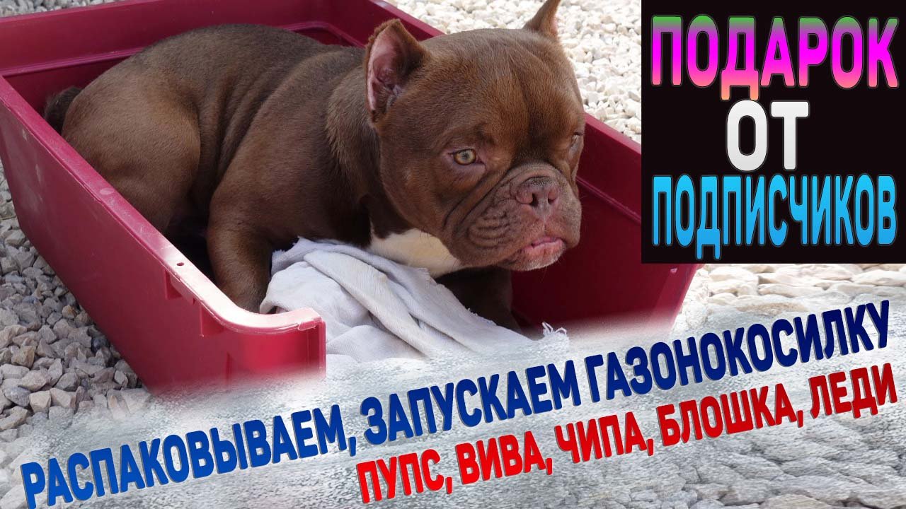 Приехал подарок от подписчиков! Вместе с собаками распаковываем газонокосилку.
