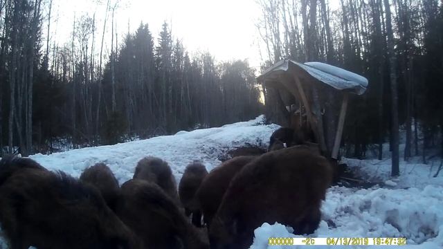 Кабаны на кормушке, запечатлённые фото ловушкой. Часть № 97