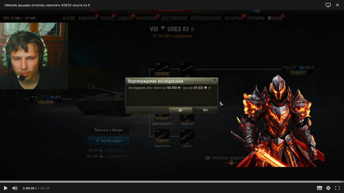 тёмному рыцарю осталось накопить 85830 опыта на 9 в мире танков. 32 серия.