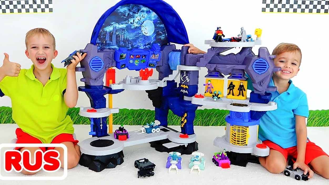 Дети распаковывают набор игрушек Batcave и играют с ним! Видео от Влада и Ники!