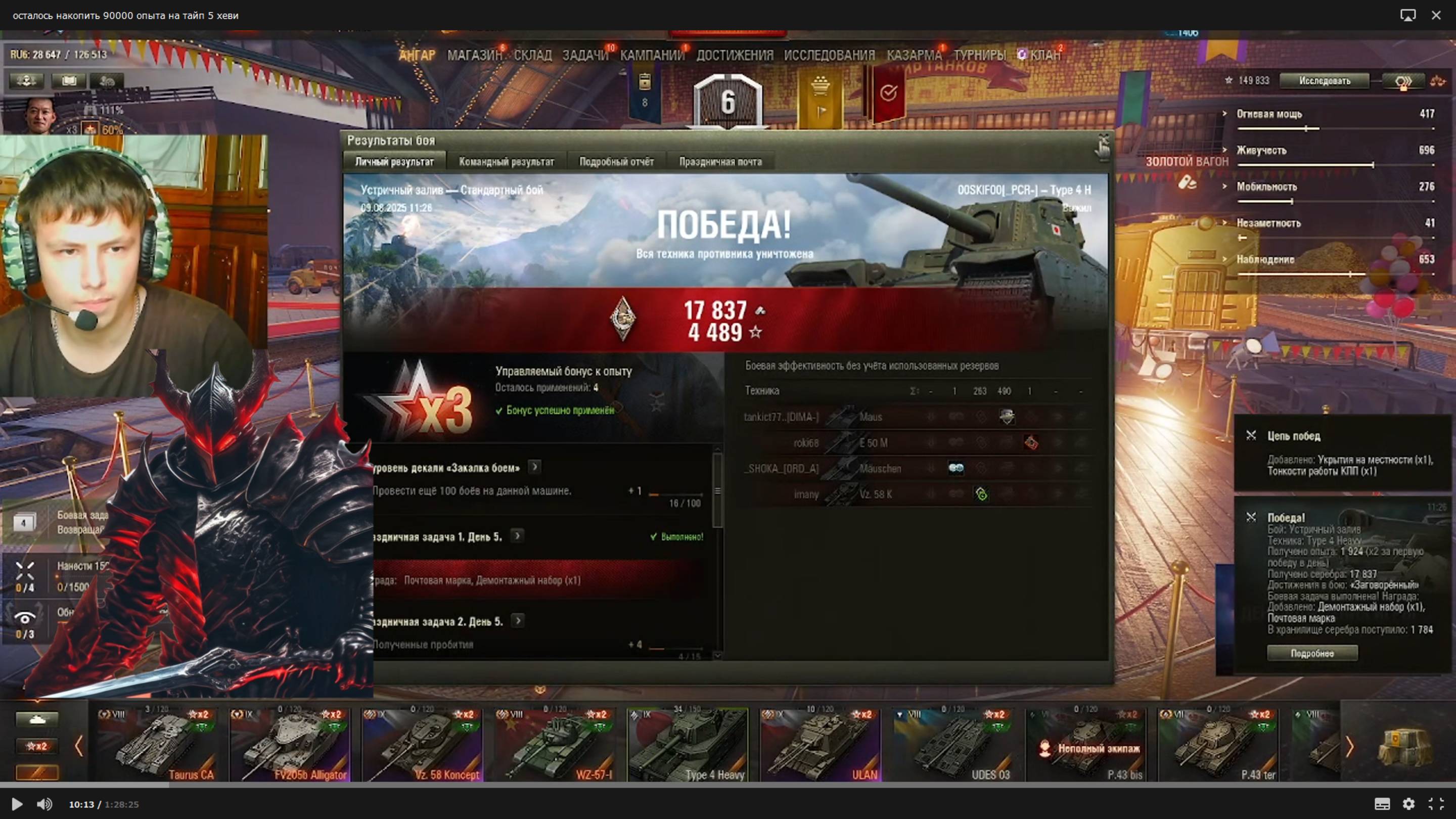 тёмному рыцарю осталось накопить 90000 опыта на тайп 5 хеви в мире танков. 20 серия.