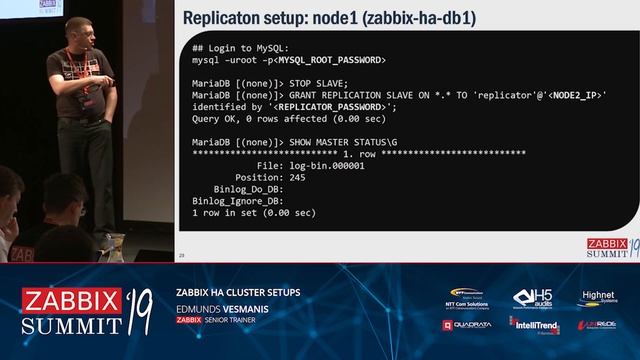 See all presentations: https://www.zabbix.com/events/zabbix_summit_2019_agenda Blogpost: https://blog.zabbix.com/zabbix-ha-cluster-setups/8264/