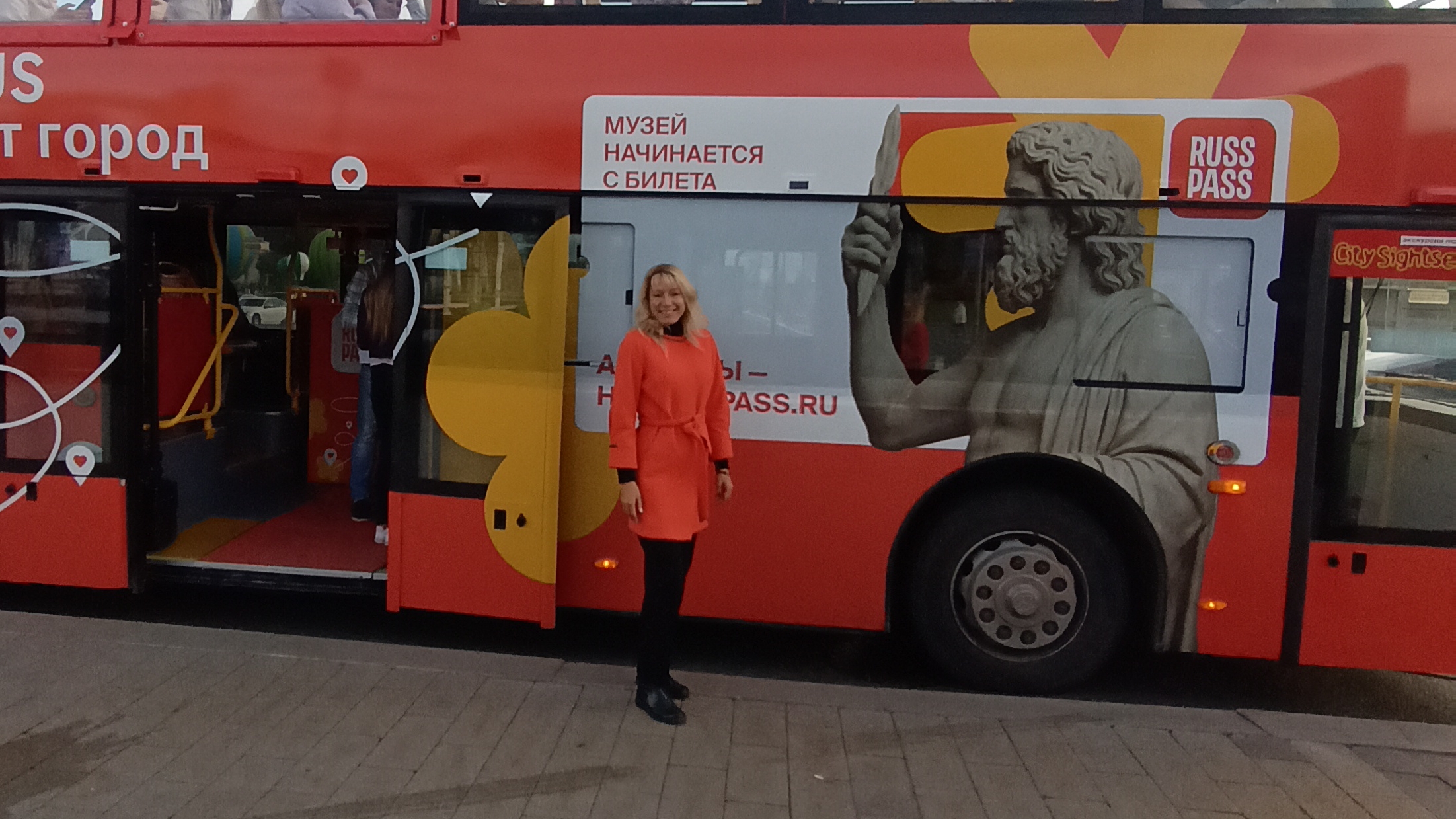 Всем добрый вечер. Сегодня хочу поделиться ещё раз своими впечатлениями после посещения бесплатной экскурсии "Дискотека на красном двухэтажном автобусе Русспас". Этот билет поймала уже я самостоятельно за сутки до мероприятия, ночью после театра, не в обычное время открытия регистрации. Немного изменились правила - сейчас необходимо при регистрации заполнить графу с данными паспорта - все цифры и когда и кем выдан. При прохождении паспорт не пригодился, проверяли только куаркод. Мне настолько понравилось, что захотелось повторить это путешествие. В этот раз я полностью наслаждалась поездкой, пела песни, смотрела на красивую Москву - у нас то был маленький дождик и крышу закрывали, то снова открывали. Видео не большое - в этот раз маршрут был немного другой, но все так же прекрасный!!! Так же немного полезной информации - если у вас есть время до экскурсии, то рекомендую пройти налево до павильона "Экономика Москвы" - насколько я понимаю - там можно ответить на вопросы и получить потом бесплатно кофе. По крайней мере мне так сказали сотрудники - я была уже относительно поздно и кофейня уже была закрыта ( ее мыли), там же проходят лекции, а за стеной шел фильм и есть зона для отдыха. Рядом находится павильон ВТБ - там можно оформить различные карты и есть даже какие-то "наклейки" на телефон, чтобы по ним делать оплату. Я похоже не настолько прогрессивный человек - для меня это новинка и много вопросов - кто может списать денежные средства с этой "наклейки", кроме магазина, метро и так далее. Я видимо ещё морально не готова к таким новшествам и плюс за рубежом ( Тайланд) наши карты не работают, а значит для всегда ( уже несколько лет) оплата только наличными. У меня не было много времени изучить этот вопрос, но теперь я почитаю про эти "наклейки" в интернете. И конечно рекомендую заглянуть направо в павильон КУПЕР. О нем писала отдельно. В туалет аналогично рекомендую сходить в парке Музеон и не рисковать идти в стационарный общий за парком Горького. Туалет в парке Музеон находится от входа правее - необходимо пройти метров 50. Он аналогично стационарный, чистый ( не синие кабинки). Сейчас приложу сюда свои впечатления от первой поездки. И у вас есть ещё некоторое время, чтобы успеть поймать билетик на этот автобус!!! Всем добрый вечер. Сегодня хочу поделиться своими впечатлениями и эмоциями от поездки - дискотеки на красном двухэтажном автобусе от "Русспас". У меня лично не получилось поймать этот билет - мне его подарили. За это отдельное огромное спасибо!!! Сама поездка была в воскресенье с 18 часов . Встреча происходит напротив центрального входа в Парк Горького на остановке со стороны Парка Музеон. Сбор начинается от 17:45. Бесплатный туалет есть со стороны Парка Горького ( прям как идти от метро Октябрьская к самому парку) и перед забором парка есть вход в бесплатный стационарный туалет. Он работает с 8 утра до 20 часов вечера, но когда я в него прибежала после экскурсии в 19:45 все двери были уже закрыты ( и женская, и мужская....) . Пришлось идти в ресторан Тануки - он уже не первый раз спасает в этой ситуации, но он со стороны Парка Музеон и мне пришлось переходить дорогу снова. Автобус приехал минут за 10-15 как раз. Сначала выходили все пассажиры, что были до нас на экскурсии, а затем уже стали запускать нас. Мы стояли в очереди и у каждого проверяли куаркод. Автобус