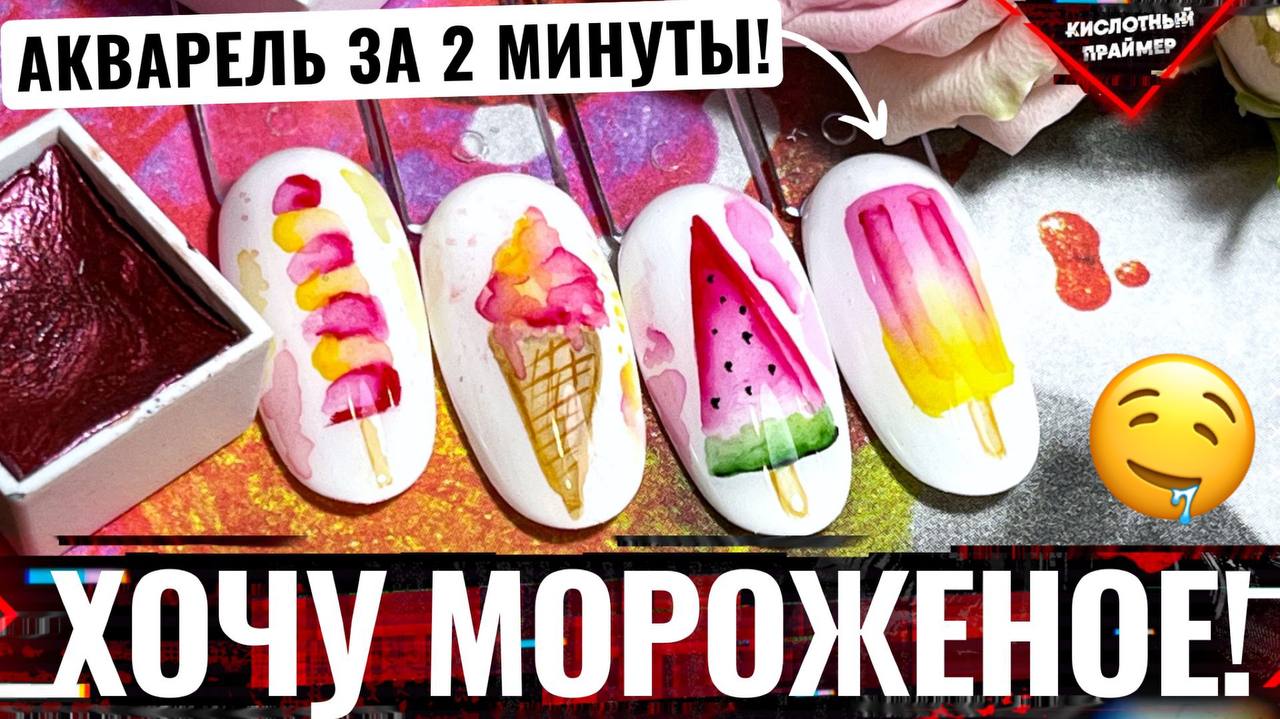 ?ОЧЕНЬ СЛАДКИЕ дизайны акварелью на типсах!? Акварельный дизайн мороженое на ногтях за 2 минуты!?