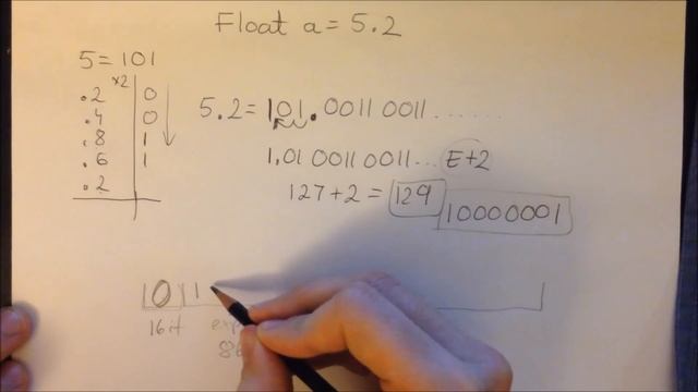 How is float a=5.2 stored in memory (C/C++)? Converting 5.2 into single precision 32 bits floating-point representation.