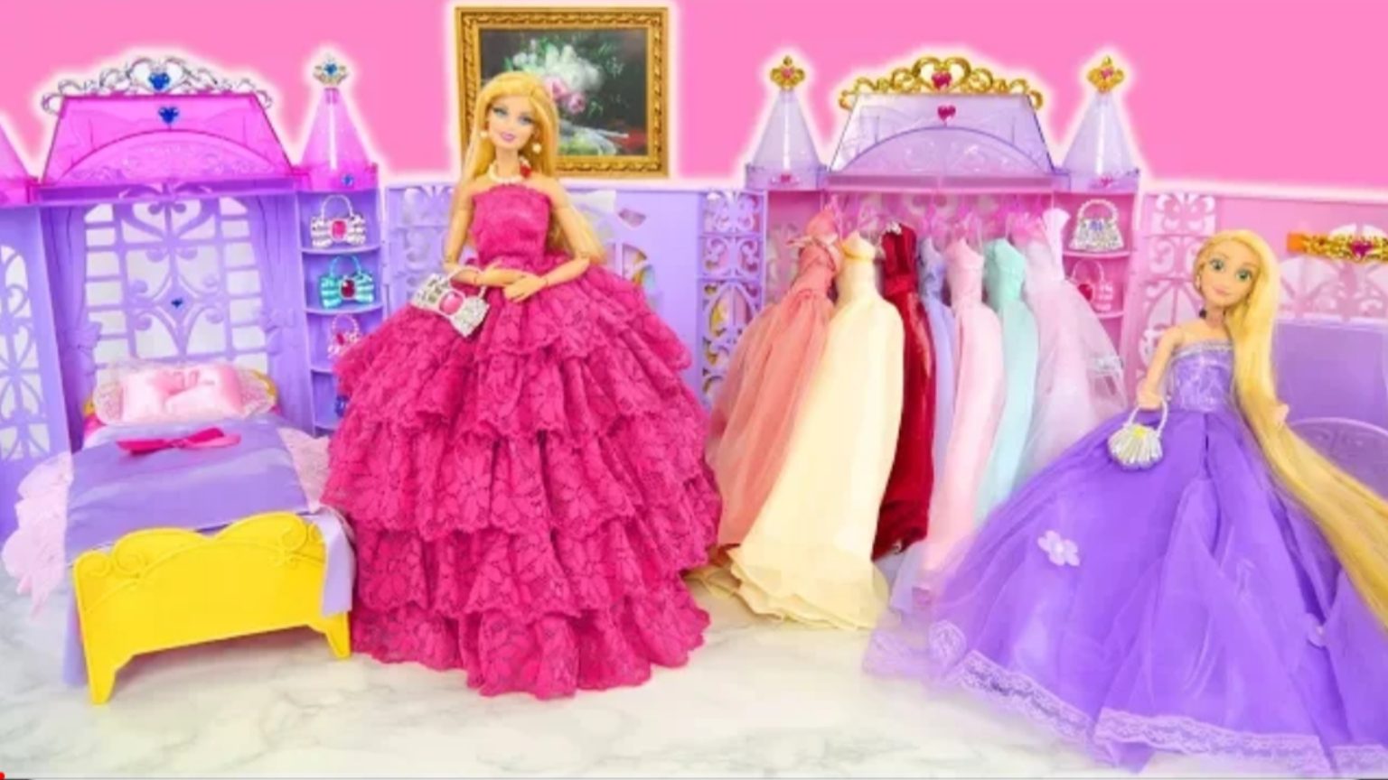 Куклы принцессы Рапунцель Барби комната принцессы утренняя рутина Розовый обединный стол