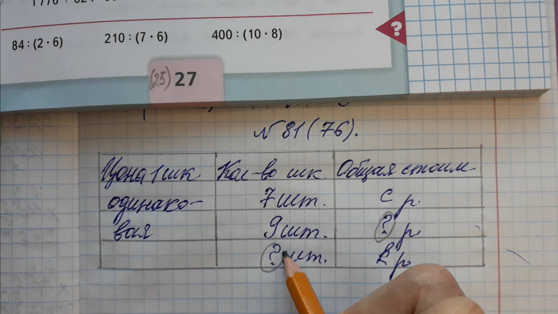 Математика 4 класс, 2 часть, номер 81 (номер76), стр.27 (25)