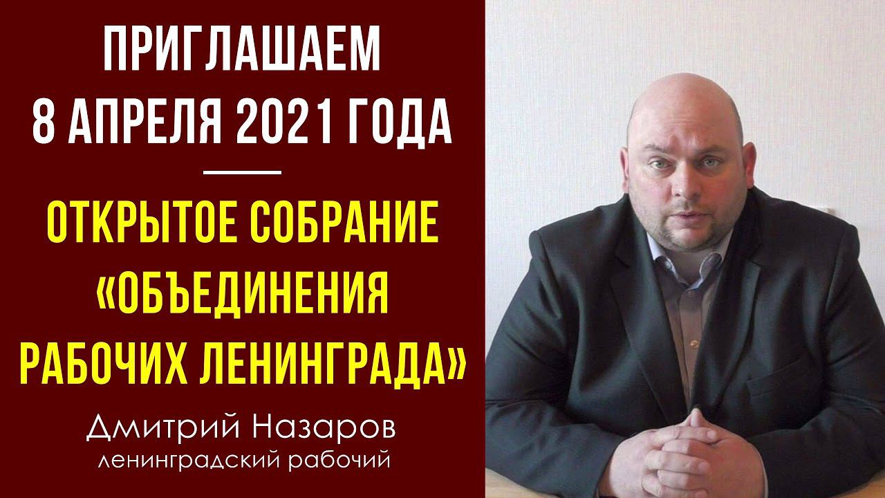 Приглашаем на открытое собрание «Объединения рабочих Ленинграда» 8 апреля 2021 г. Д.Назаров, рабочий