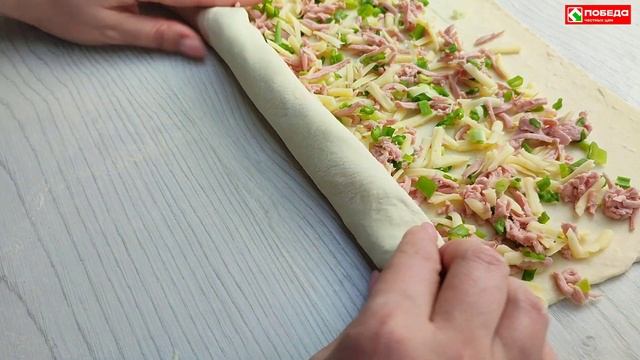 Вам понадобиться: Тесто слоёное (бездрожжевое) — 500 гр; Сосиски — 300 гр; Сыр — 150 гр; Лук зелёный — небольшой пучок; Яйцо — 1 шт.