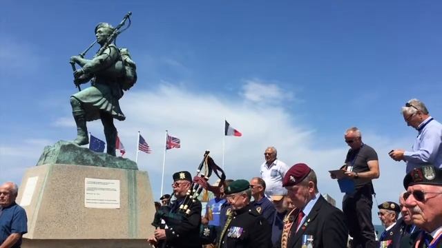 The Pipe Major plays for the Veterans Back To The Beaches 2017 London Taxi Charity 'Back To The Beaches'