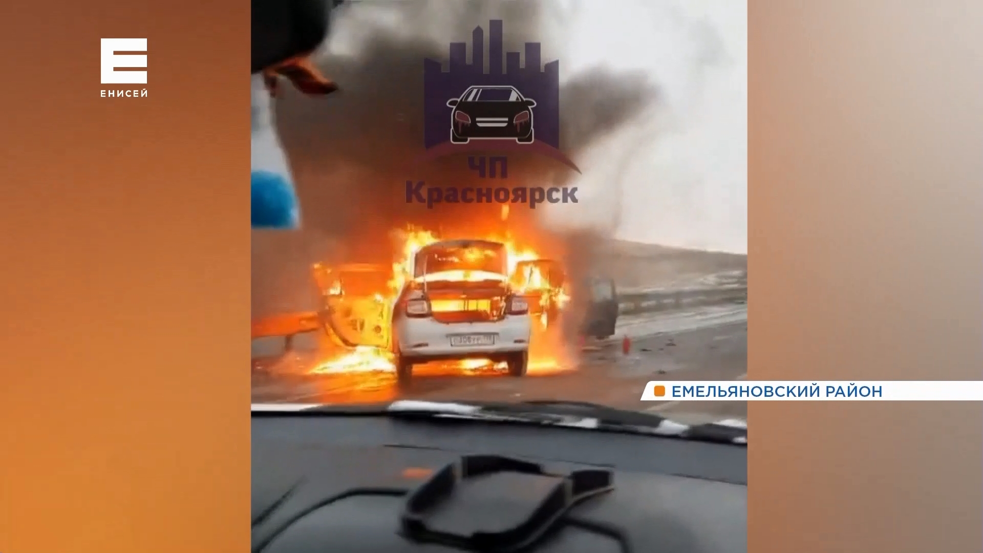 В ДТП с горящей машиной в Емельяновском районе один человек погиб и трое пострадали