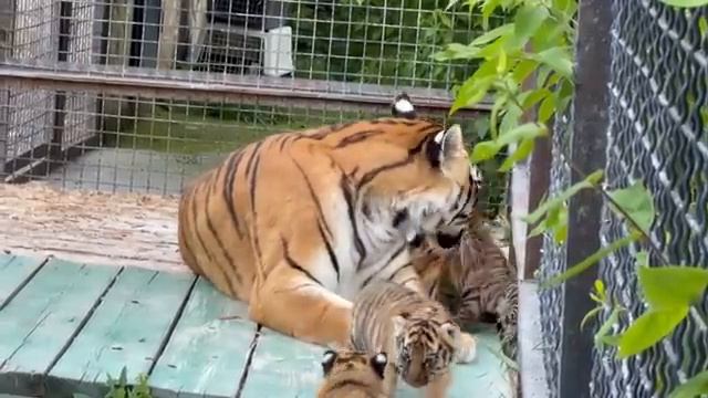 Полосатая мамка со своими детками 🐯