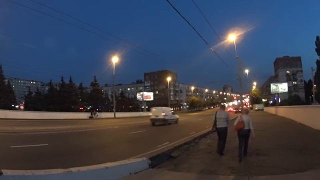 Ночное движение пешеходов на эстакадном мосту в Калининграде (Россия).