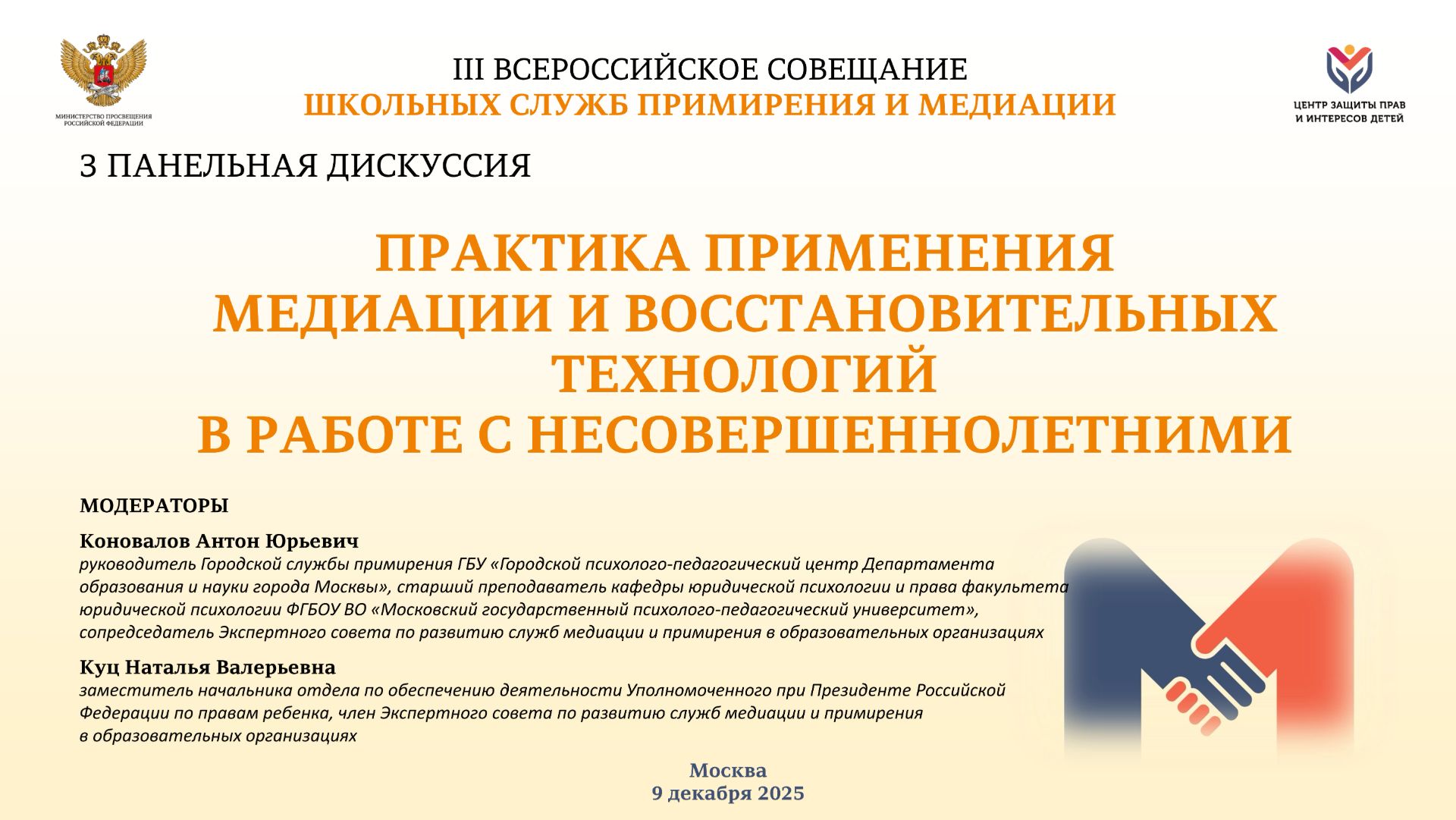 III Всероссийское совещание школьных служб примирения и медиации: 3 панельная дискуссия