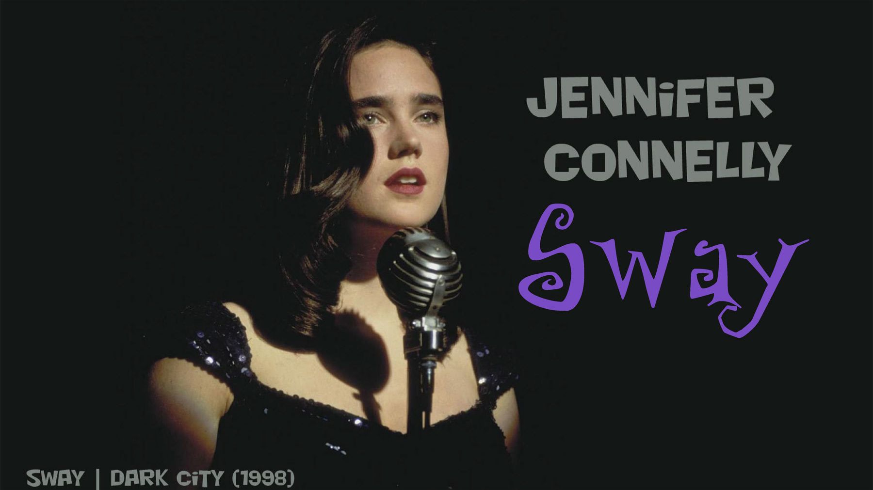 Песня «Sway» — англоязычная версия мексиканского мамбо «Quién Será», написанная в жанре джаз. которую сочинил в 1953 году Пабло Бельтран Руис (1915—2008), руководитель джазового оркестра в Мехико. Английский текст на музыку Руиса написал в 1954 году Норман Гимбел. В ролике использована режиссёрская версия, где Дженнифер Коннелли сама исполняет песню «Sway», а не Anita Kelsey, голос которой звучит в стандартной версии фильма. Дженнифер Коннелли — американская актриса с российско-ирландским происхождением, звезда Голливуда, которая прославилась ролями во многих культовых фильмах. Исполняла вокальные партии в саундтреке к фильмам «Феномен», «Воспоминания о будущем» - «The Wind».