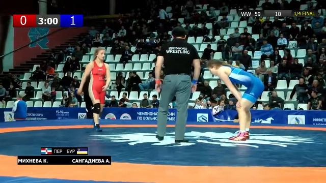 ЧР по вольной борьбе среди женщин. Михнева К.(ПЕР) и Сангадиева А.(БУР)-1/4 финала, 59кг
