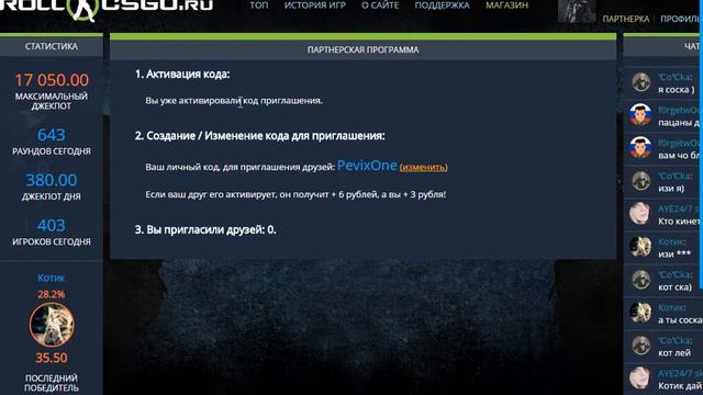Сайт http://rollcsgo.ru/#room-2 Код: PevixOne