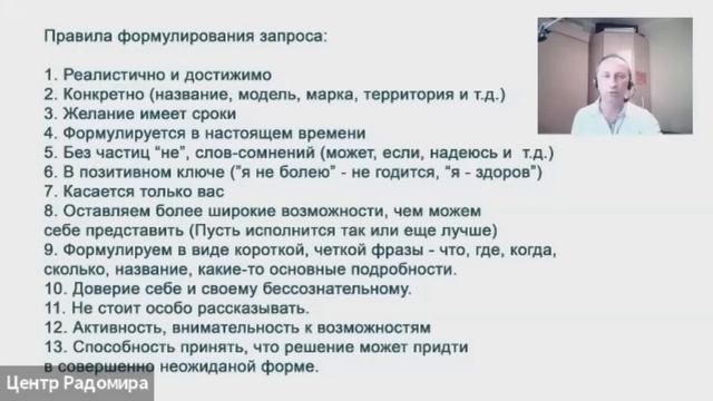 Проект реализуется победителем конкурса «Общее дело» благотворительной программы «Эффективная филантропия» Благотворительного фонда Владимира Потанина. Вы узнаете, как правильно формулировать желания, чтобы они сбывались. Никакой мистики и псевдочудес, ресурсы – внутри вас. Ведущий: Ян Щипин, психолог-консультант, семейный психолог, регрессолог, арт-терапевт. Это встреча №31 из цикла #Ресурсный_понедельник - курса онлайн-занятий по снятию тревоги и стресса. Проходят еженедельно по понедельникам. Для тех, кто хочет обрести душевный покой в эпоху пандемии коронавируса – нестабильности и небезопасности. Все занятия «Ресурсного понедельника» тут: https://www.youtube.com/channel/UCAKreMMmF3RWSH5ddwggYCw Пройдите по ссылке, подпишитесь на канал и нажмите на значок колокольчика, чтобы следить за обновлениями. Видео размещаются каждую неделю. Санкт-Петербургская общественная организация по гармоничному развитию семьи и личности «Центр «РАДОМИРА» реализует программу встреч при поддержке Фонда президентских грантов.