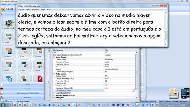 Como mudar o áudio de um vídeo dual áudio Olá vou mostrar como mudar o áudio de Português para Inglês ou Vice e Versa. As vezes baixamos um filme que tem os dois áudios e ainda por cima a legenda, eu gosto de assistir filme legendado em Português com áudio em inglês. Vamos usar o FormatFactory para fazer essa conversão, abra o programa, escolha o formato da conversão que você deseja eu vou escolher AVI, clique em Adicionar Arquivo, selecione o arquivo e clique em Abrir, vamos clicar em configurações de saída, índice de Áudio Stream ele vai estar no formato padrão, para saber qual áudio queremos deixar vamos abrir o vídeo que vamos converter com player Media Player Classic, vá na pasta que salvou o filme clique com o botão direito do mouse sobre ele e escolha a opção abrir com e escolha o Media Player Classic, vá em file, Quick Open File, localize seu filme, clique em abrir, assim que ele abrir clique sobre o filme rodando e selecione áudio, nele vai aparecer o áudio em Português 1 e em Inglês 2 ou vice e versa, isso nos dá a certeza do áudio que queremos, feito isso voltamos ao FormatFactory e vamos selecionar a opção deseja, no meu caso o Português 1 e o Inglês 2, eu coloquei 2 por que quero o áudio em inglês e a legenda em português, clique em ok, ok, não e iniciar. Agora vamos aguardar terminar a conversão vou pausar e volto para mostrar o resultado. Conversão concluída com sucesso. Vamos abrir o arquivo convertido. O primeiro vídeo com a legenda amarela foi o que eu converti está do jeito que eu coloquei áudio em inglês e legenda em português, o segundo com a legenda branca é o original com áudio português e inglês. DOWNLOAD FormatFactory - https://filehippo.com/ #formatfactory