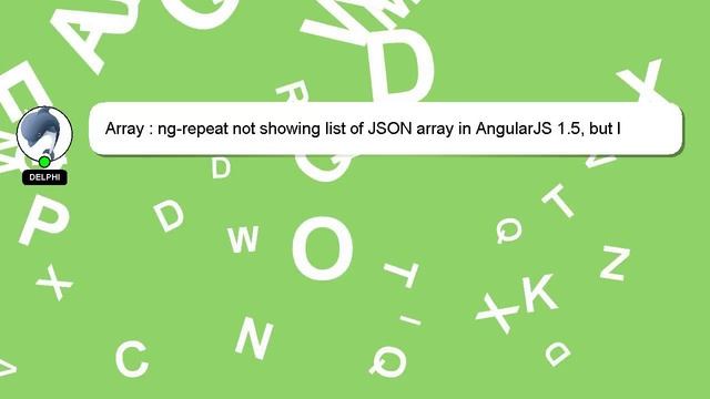 Array : ng-repeat not showing list of JSON array in AngularJS 1.5, but I can see values individually To Access My Live Chat Page, On Google, Search for "hows tech developer connect" As promised, I have a hidden feature that I want to share with you. This is a YouTube's feature which works on Desktop. First, Make sure the video is currently in playing mode. After that, type the word 'awesome' on your keyboard. The progress bar on YouTube will be altered to a flashing rainbow. A quick introduction about me, Greetings, my name is Delphi. Let me help you with your questions. Array : ng-repeat not showing list of JSON array in AngularJS 1.5, but I can see values individually I am available to answer your more specific queries, so feel free to comment or start a chat. If you have knowledge to contribute or an answer to provide, we encourage you to comment below. Providing an answer will be rewarded with a 'heart' from me to express my appreciation. 1.5, in can AngularJS showing : not ng-repeat I list see Array JSON of individually but array values