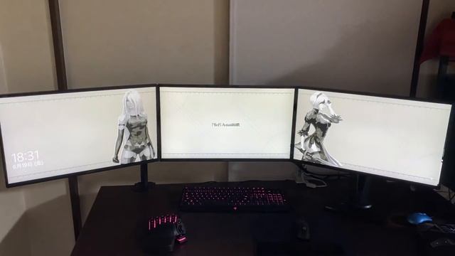 NVIDIAのSurroundで複数ディスプレイを結合 ロック画面でスライドショーの状態の動画です