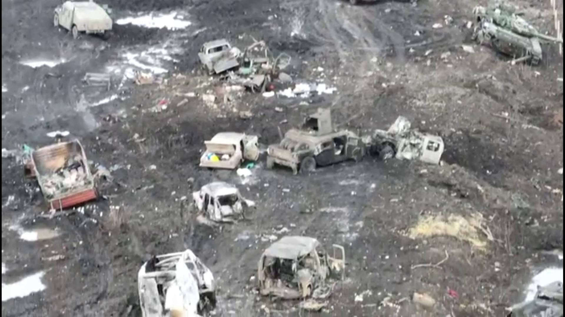 Атмосферное... куча битой украинской военной техники и реквизированных легковушек на пути к Бахмуту