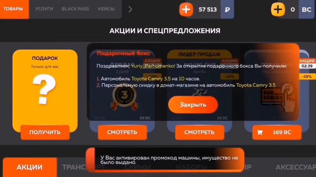 Активировать промокод
