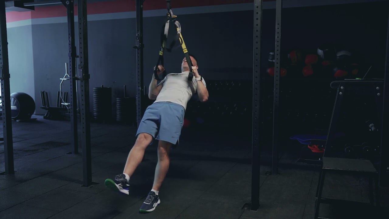 Изометрические Горизонтальные подтягивания на TRX на одной ноге/ Isometric TRX row single leg