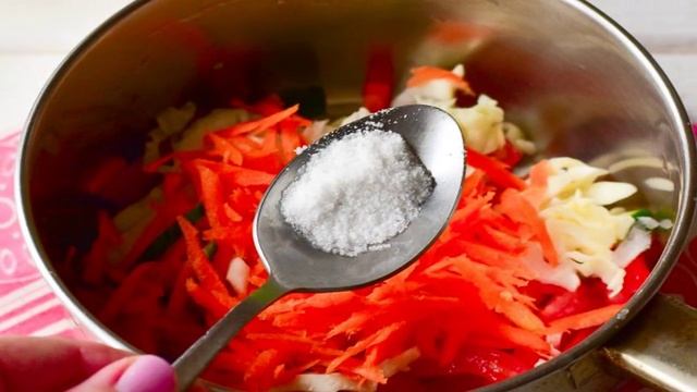 Салат "Уплетайка" на зиму получается не только очень вкусным, но еще и полезным. Подавать готовый салат можно к любым мясным блюдам. Он сочетается отменно еще и с гарнирами. Ингредиенты: Морковь1 штука, Огурец1 штука, Помидор1 штука, Перец болгарский1 штука, Капуста100 грамм, Сахар1 по вкусу, Соль1 по вкусу, Масло растительное50 мл, Уксус 9%10-20 мл, Благодарим за просмотр! Подписывайтесь на канал🍕 Поделитесь своим мнениенм о рецепте в комментариях!